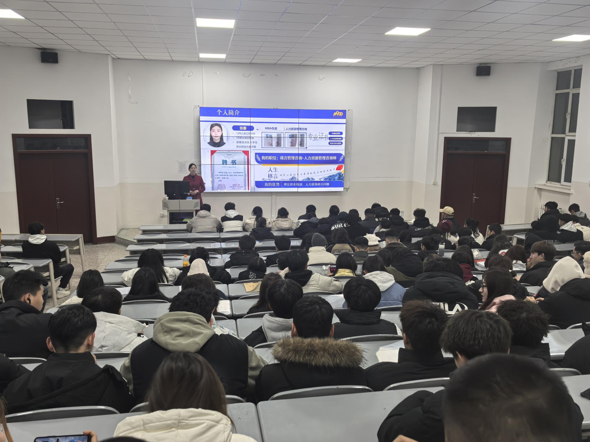 为提升学院就业指导工作水平,推动毕业生高质量充分就业,12 月 19 日,学院招生就业指导办公室特邀北京师范大学科技集团特聘讲师冯昊、经开区人力资源产业集团特聘讲师张惠开展专题讲座,聚焦《高职类学生生涯规划》与《求职准备 - 简历制作与面试技巧》两大主题,为学生学业与职业发展指明方向。