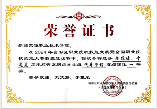 2024获全国职业院校技能大赛营销赛项新疆维吾尔自治区选拔赛营销赛项团体一等奖