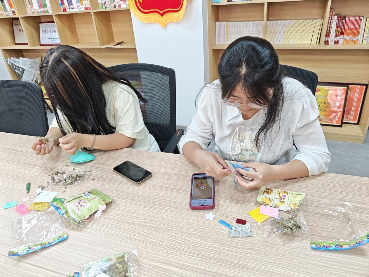 在香包制作环节,同学们展现出了不同的风采,有的凭借平日实操练就的精细操作能力,裁剪布料、穿针引线的动作娴熟利落;有的发挥文字功底与想象力,为香包赋予诗意的图案设计;有的则在色彩搭配和造型设计上别出心裁。