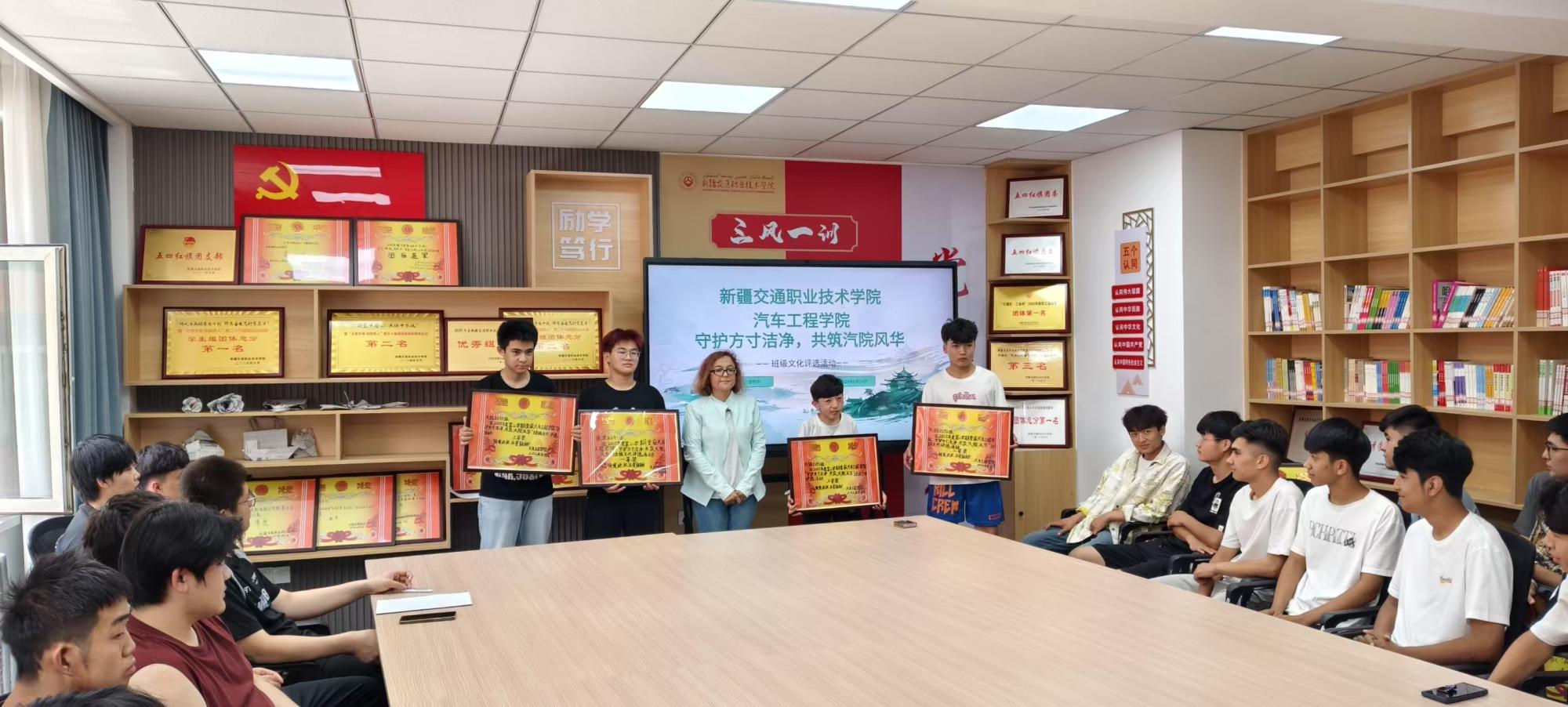 6月24日下午,BEAT365英国官网学生管理办公室在12号学生公寓一站式服务中心在红色书屋举行“守护方寸洁净,共筑汽车风华”班级文化评比颁奖仪式。