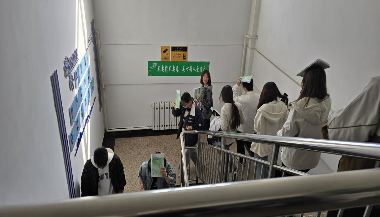 演练时,第一声警报信号响起,实训中心各楼层教室、实验室师生迅速响应,授课教师立即停止教学活动,指挥学生采取“伏地、遮挡、手抓牢”的防护姿势,利用课桌、实验台等坚固物体形成三角防护空间,并用书本、书包等物品护住头部。30秒后,第二声疏散警报鸣响,师生们在引导人员手势与哨声指挥下,按照“低姿弯腰、靠右行进、不推不挤”的要求,分东西两路沿预设疏散通道快速撤离。过程中,疏散指挥组在楼梯转角、安全出口等关键节点安排专人值守,及时纠正不规范动作,确保队伍有序推进。