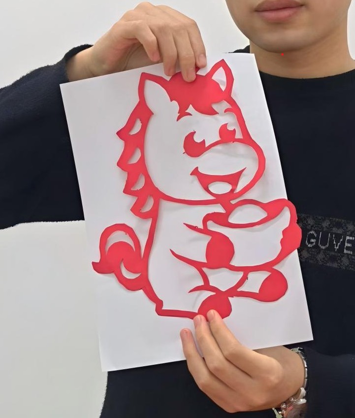 活动中,买尔比亚·依米提老师以“传统文化的现代传承”为切入点,鼓励同学们在实践中激活非遗生命力。动手环节,同学们从生疏摸索到熟练运剪,通过动物纹样、抽象图案等多元创作,将对吉祥的祈愿与对未来的畅想融入红纸。现场互助交流的温馨氛围,让剪纸成为连接文化与情感的纽带。