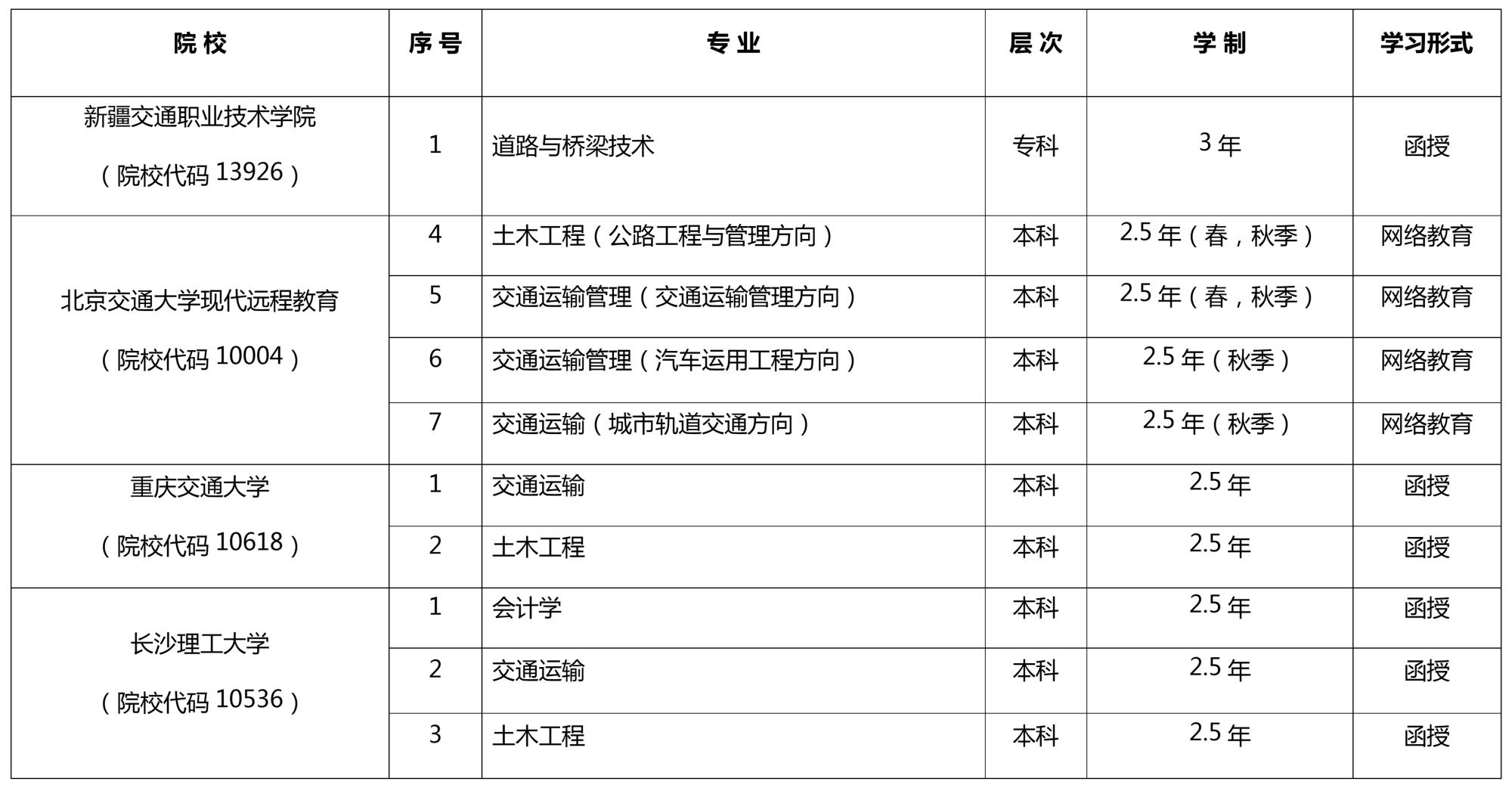 1、报考新疆交通职业技术学院函授教育的考生(函授)