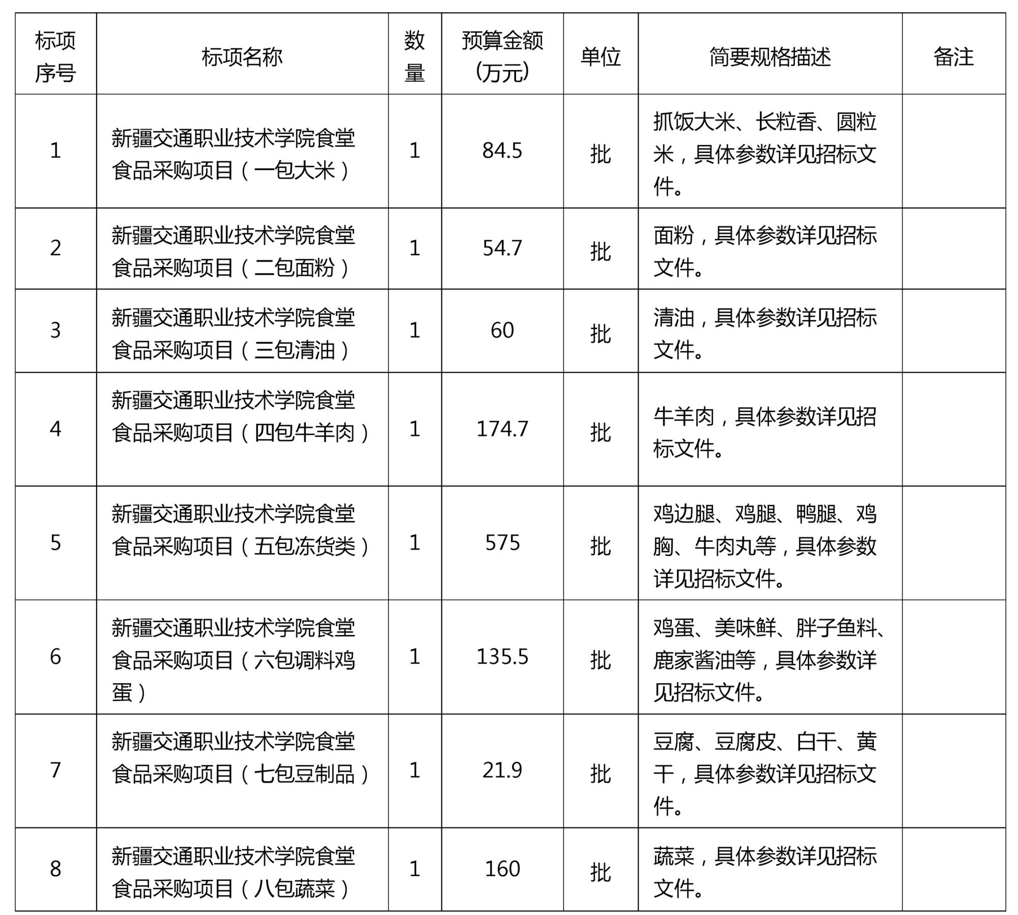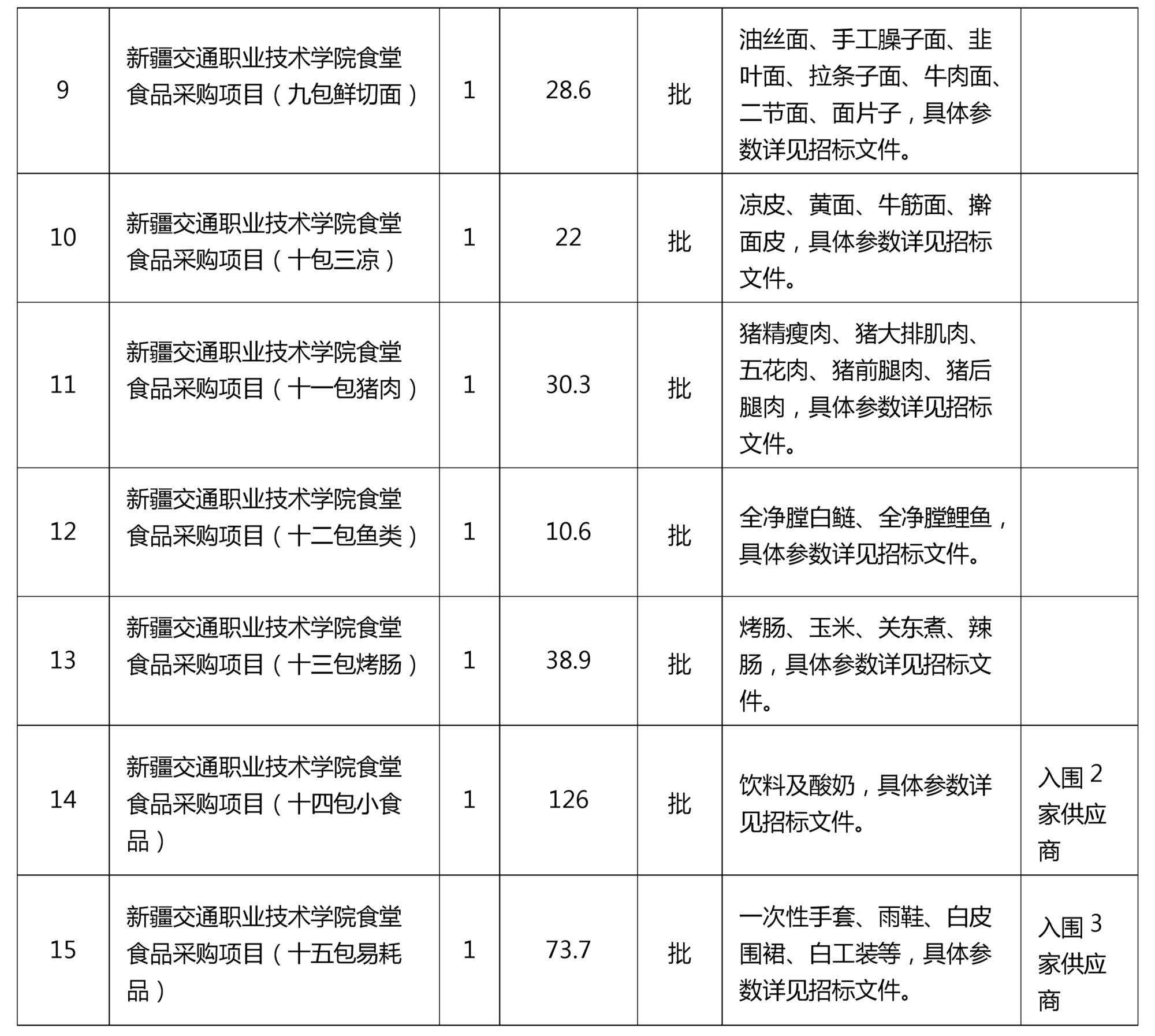 项目名称:新疆交通职业技术学院食堂食品采购项目