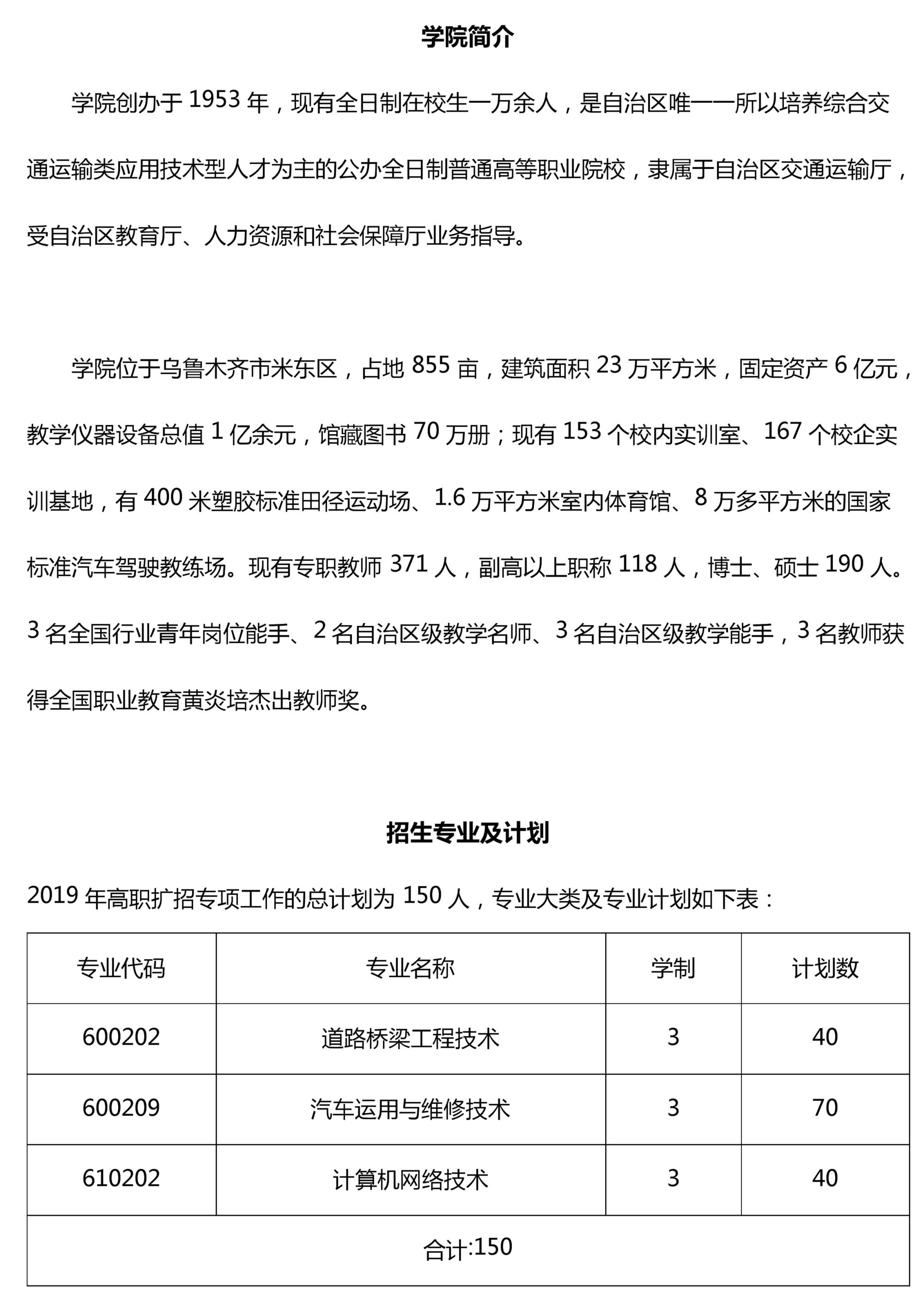 新疆交通职业技术学院2019年高职扩招专项工作第二阶段招生简章