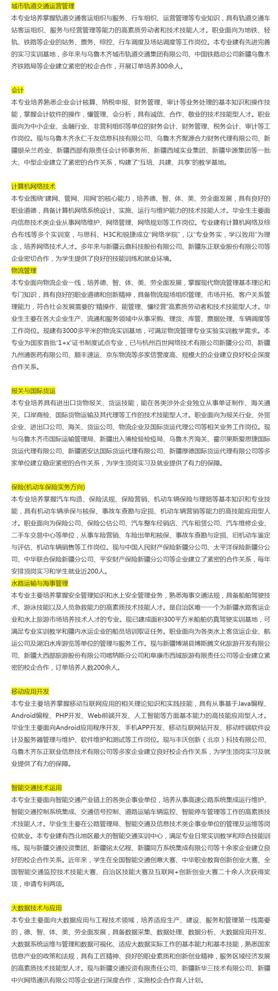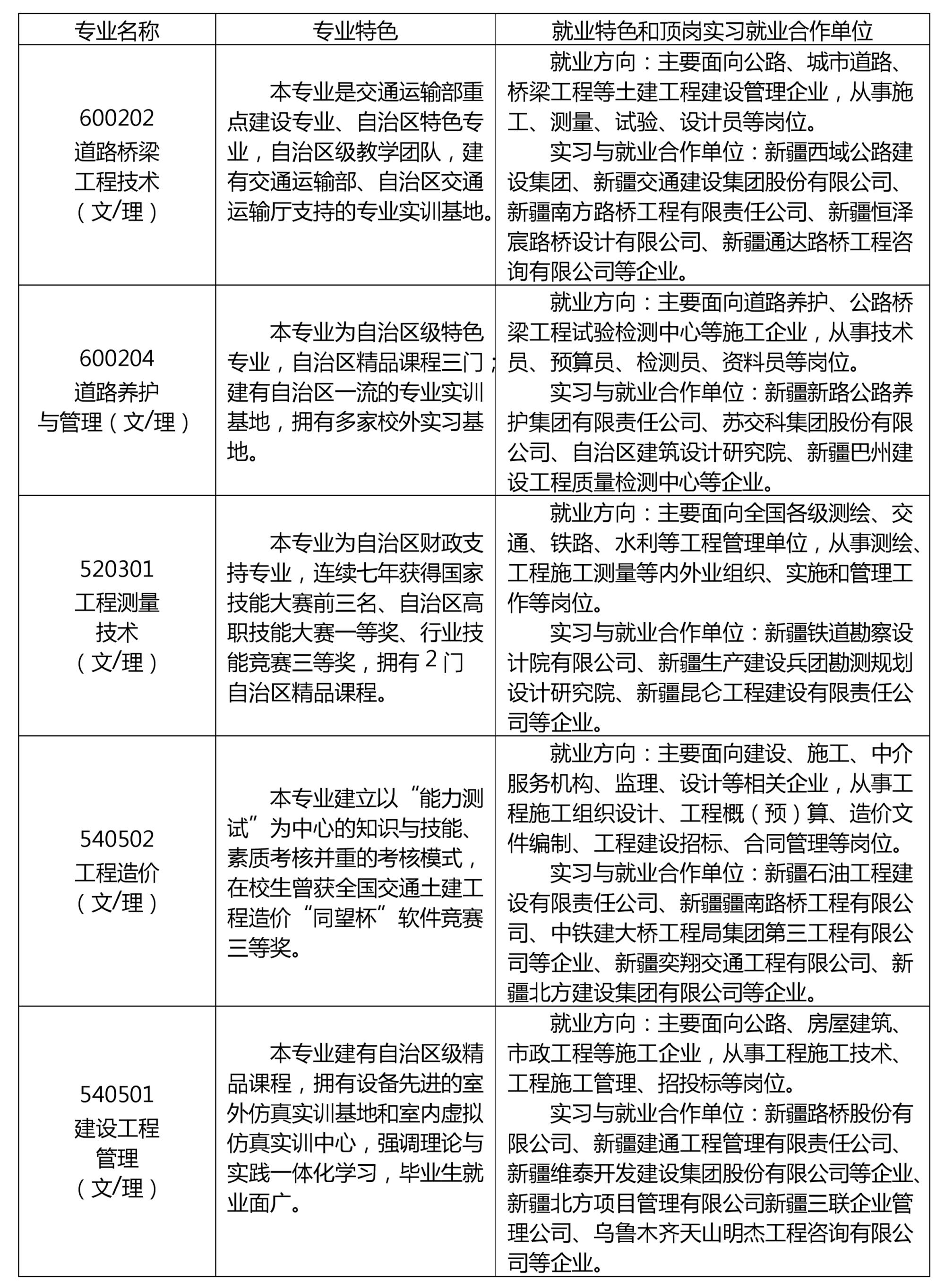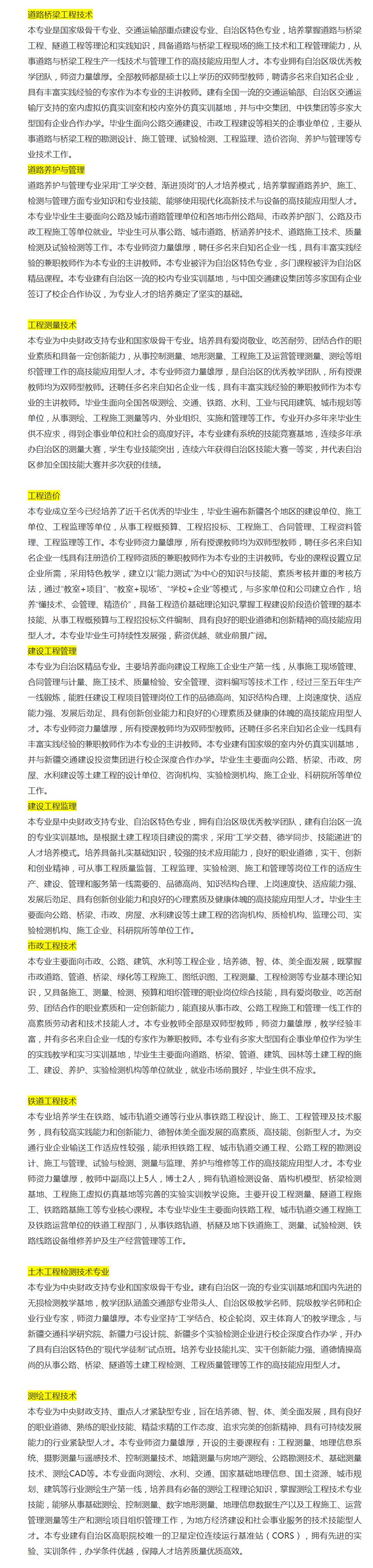 新疆交通职业技术学院2020年普通高职(专科)