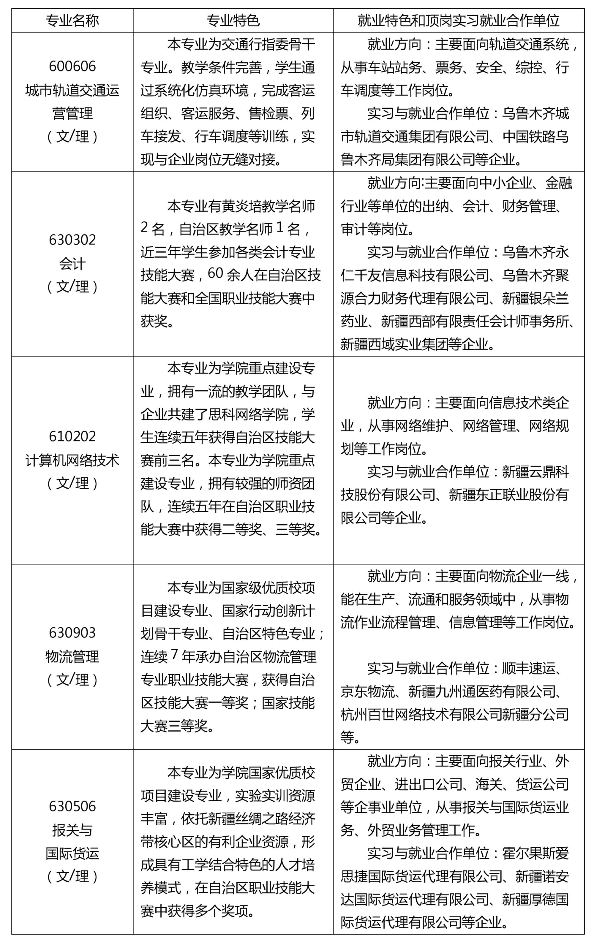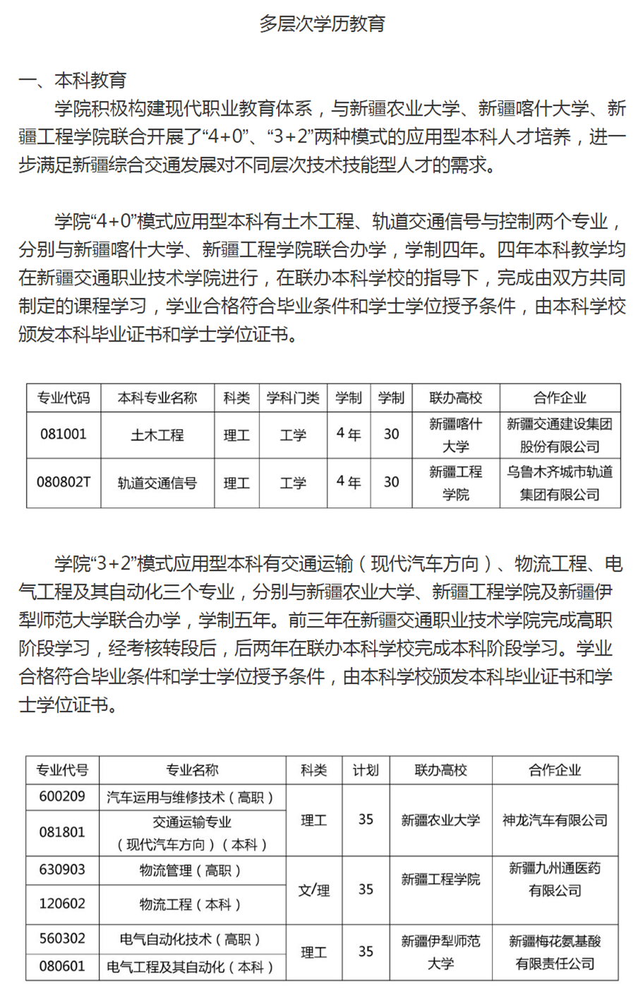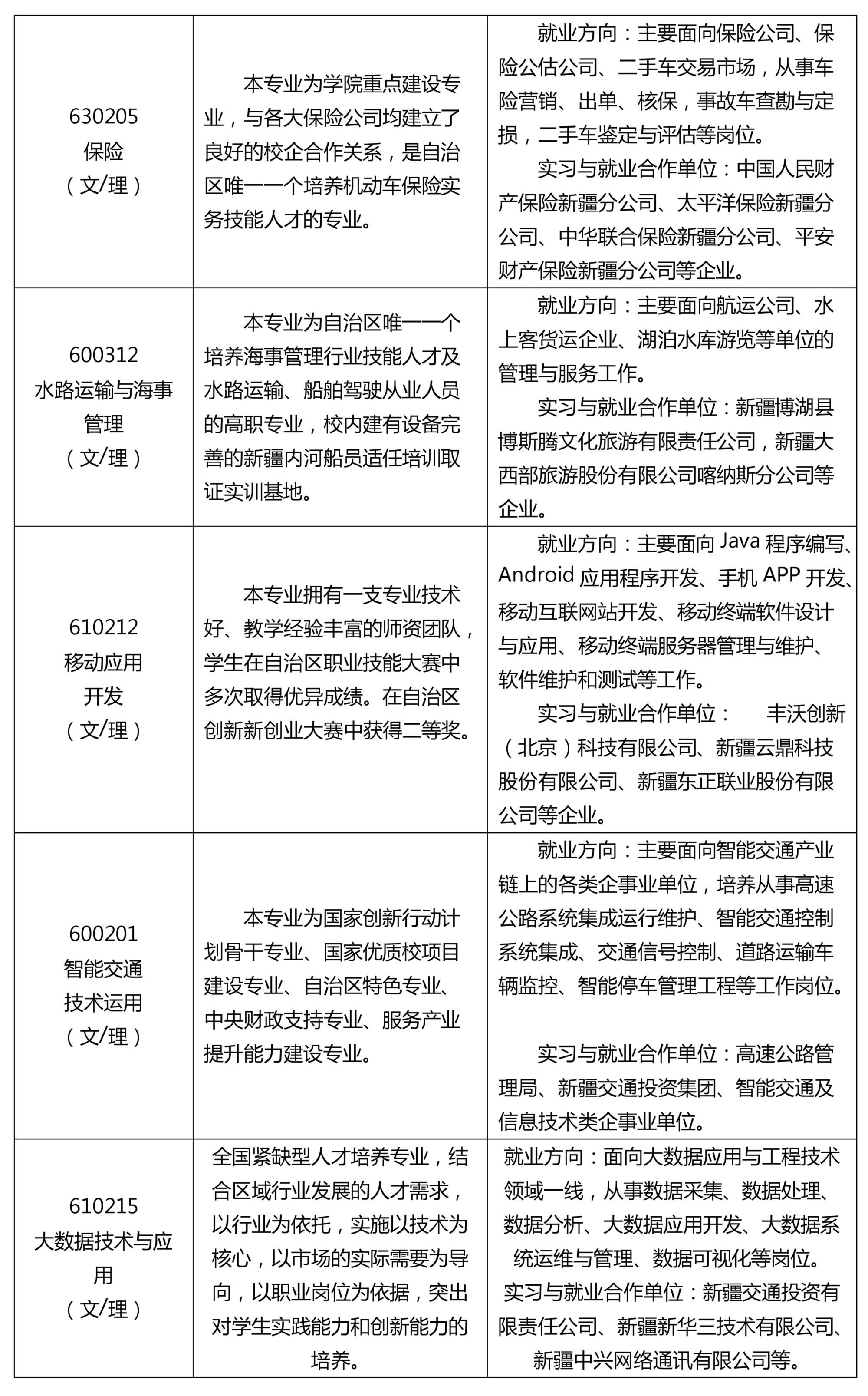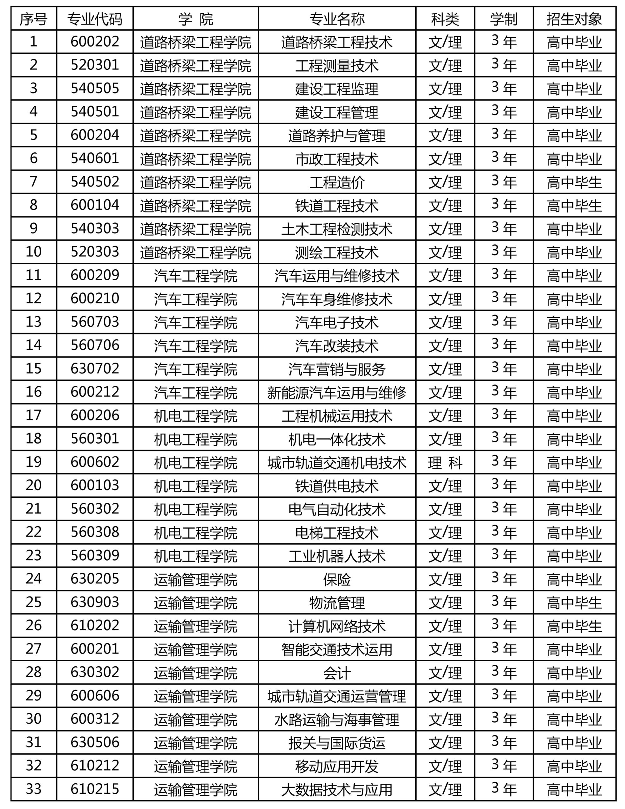 新疆交通职业技术学院2020年普通高职(专科)