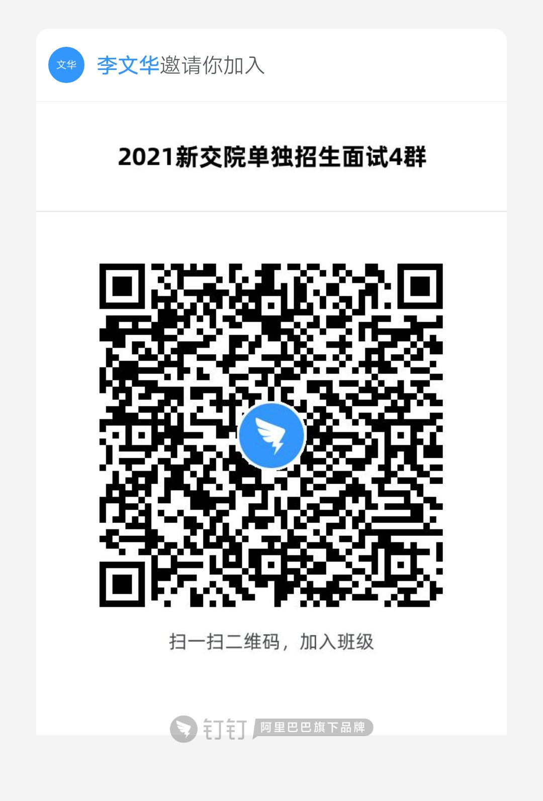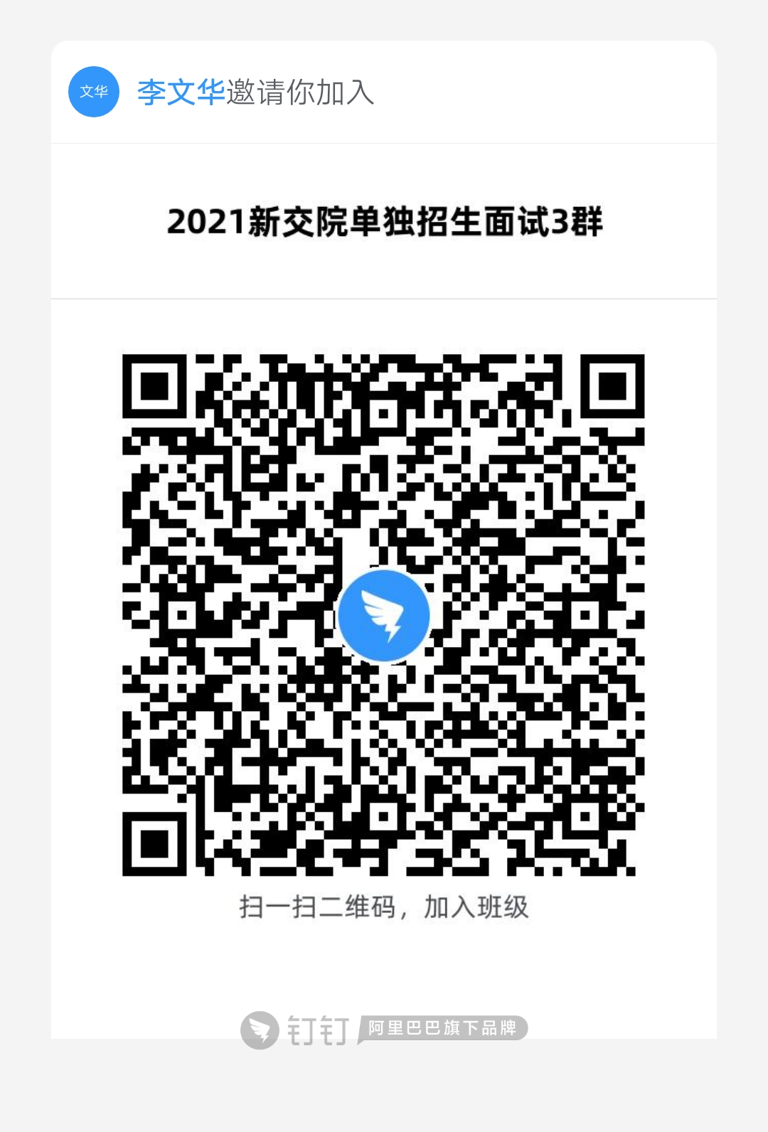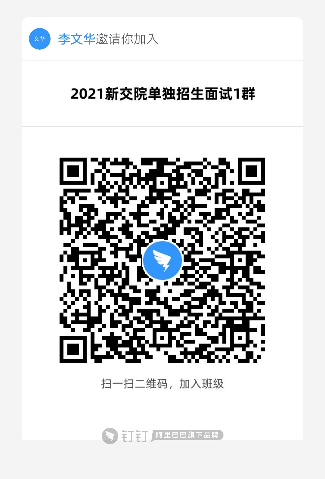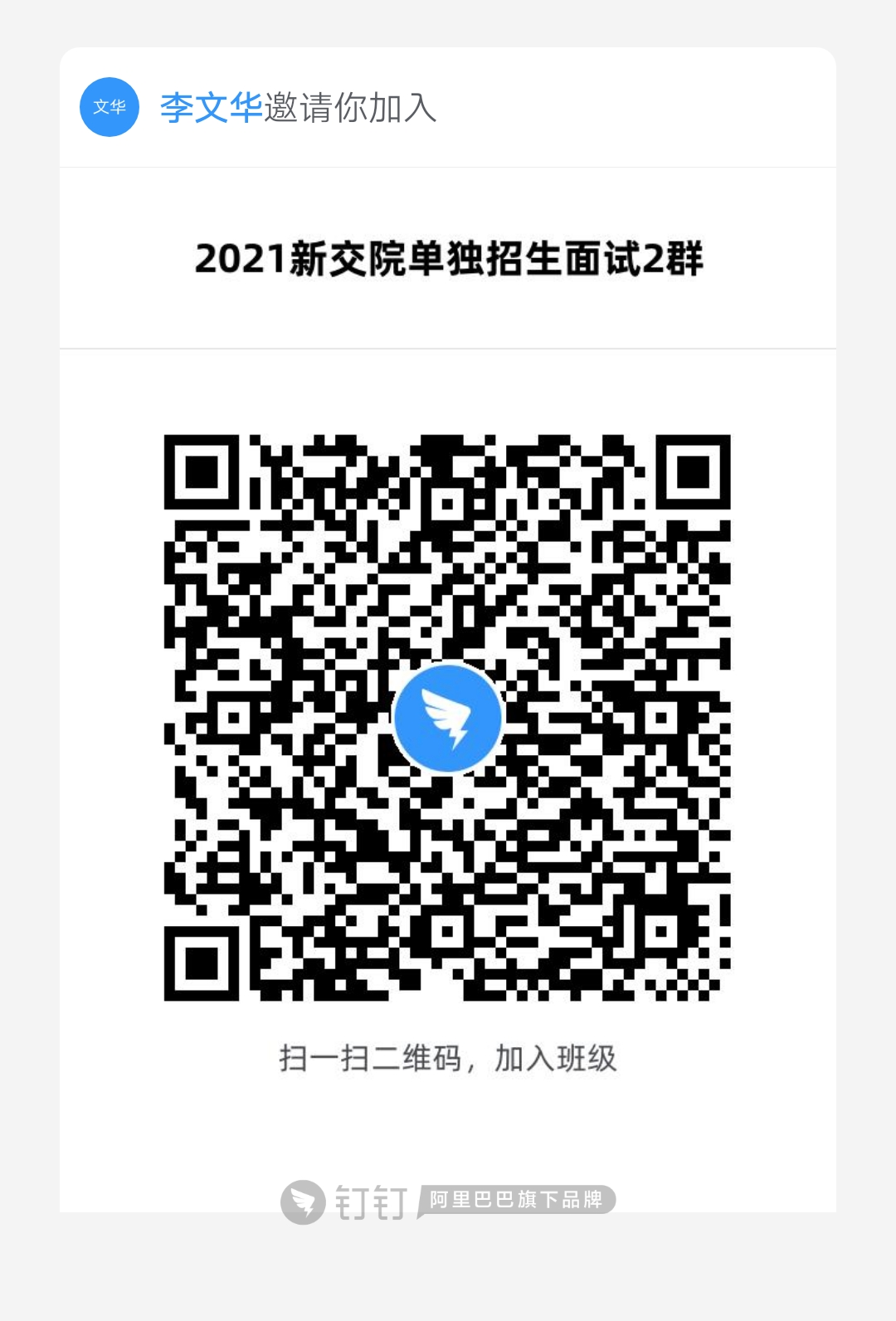 正式面试时间为2021年4月14日,面试采取线上答辩形式。考生使用本人手机或者电脑端下载钉钉软件,用手机号注册登录,并根据附件进入相对应的钉钉群。2021年4月13日安排模拟面试,相关事宜请关注群内消息。2021年4月13日和14日考生务必保持手机网络信号畅通,全天登录钉钉用户,随时保持钉钉用户开启模式,在模拟面试前仍未进入相应钉钉群的,视为自动放弃本次面试机会。