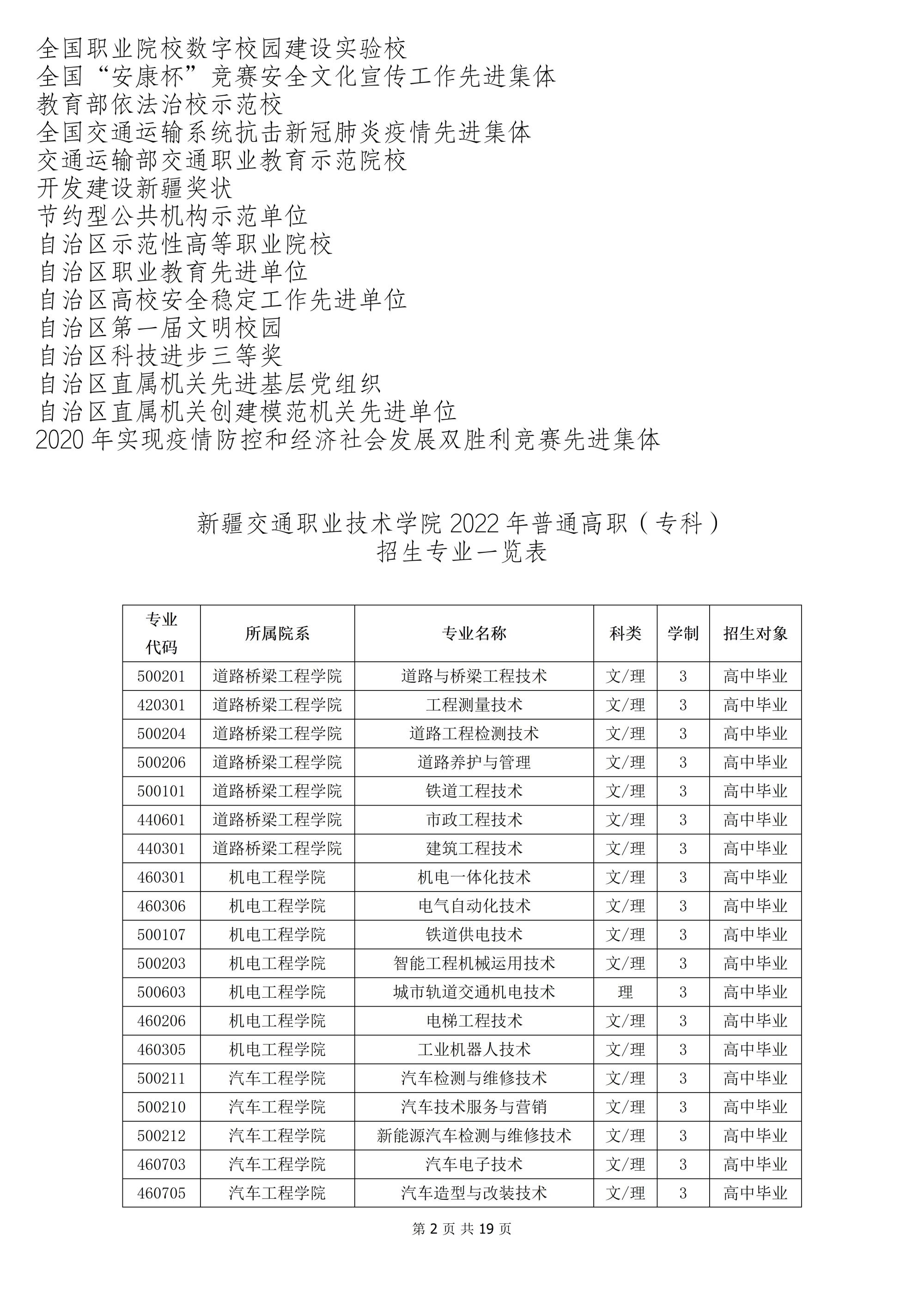 新疆交通职业技术学院2022年招生简章