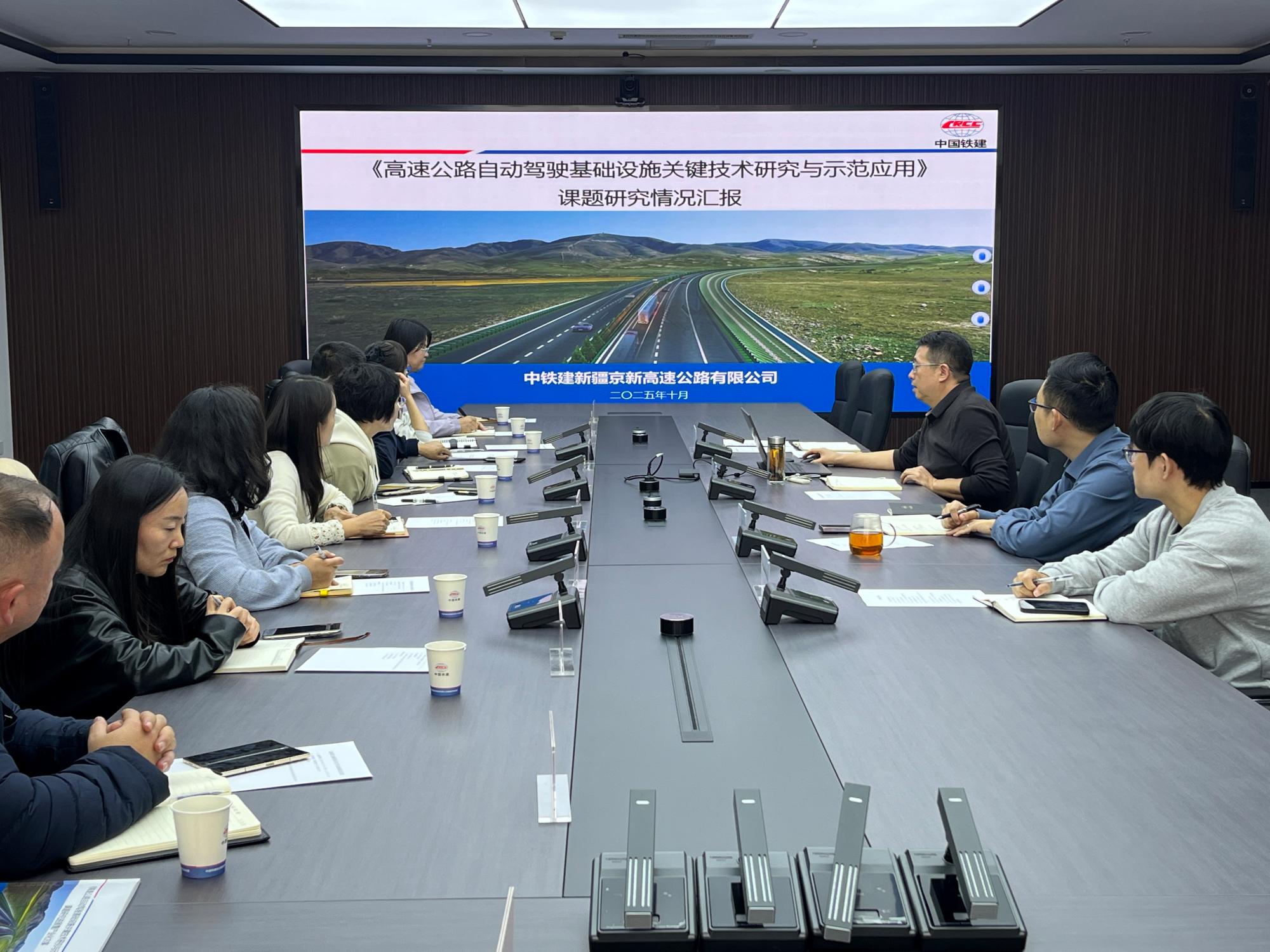 会上,中国铁建投资集团京新高速公路总包部总经理隆星,详细介绍了 “京新高速(G7)梧桐大泉至木垒段高速公路自动驾驶基础设施关键技术研究与示范应用” 课题核心方向与规划思路。我校代表结合新能源汽车、道路工程、运输管理等专业优势,围绕 L4 级别自动驾驶电动重卡技术适配、高速公路自动驾驶基础设施关键技术方案优化、车路云一体化物流调度系统搭建、高速公路智慧化提升改造路径等方面,与对方展开针对性交流讨论,分享教学科研与实践探索中的经验见解。