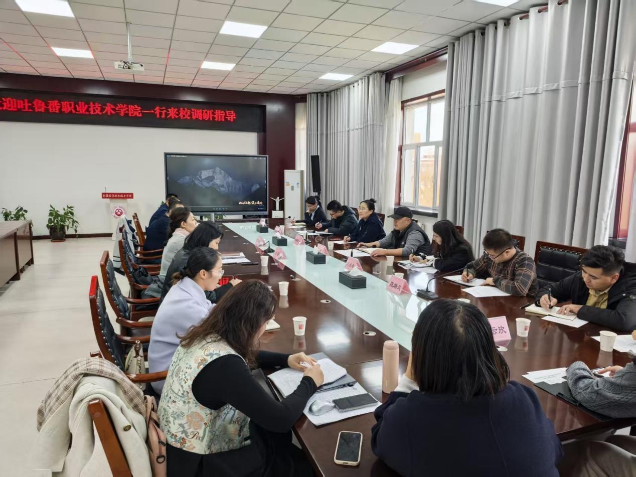 10月28日下午,吐鲁番职业技术学院党委委员、副院长黎晗一行到校调研,学校党委常委、纪委书记刘昭及党委常委、党委统战部部长曹兴举参加座谈交流。